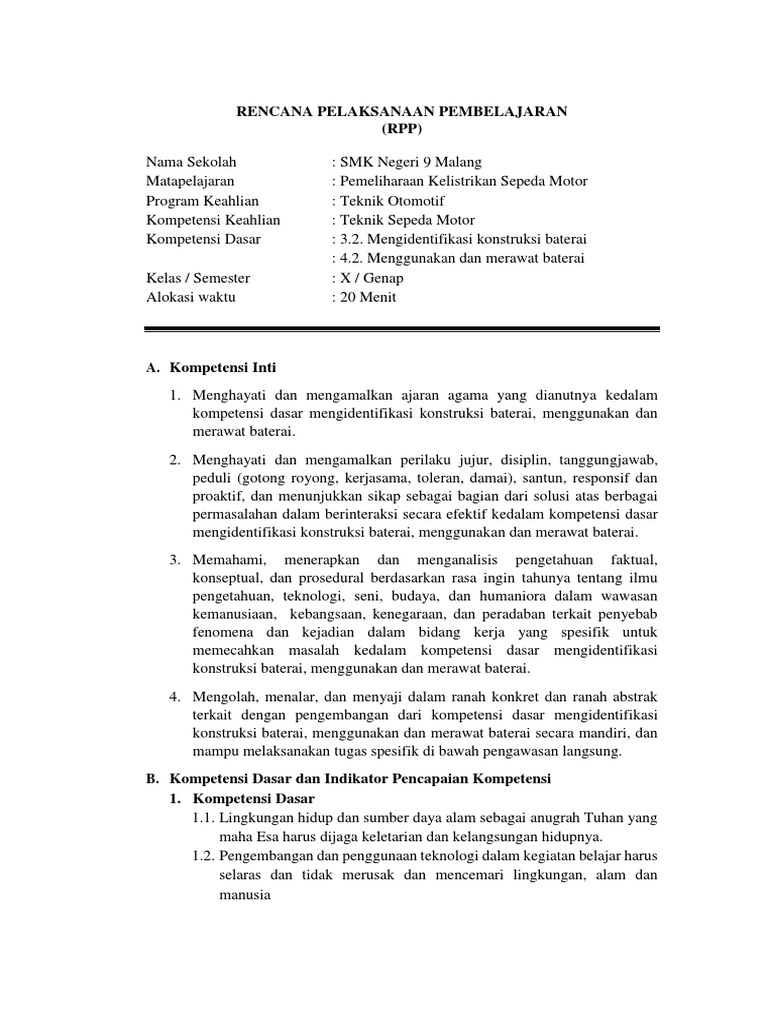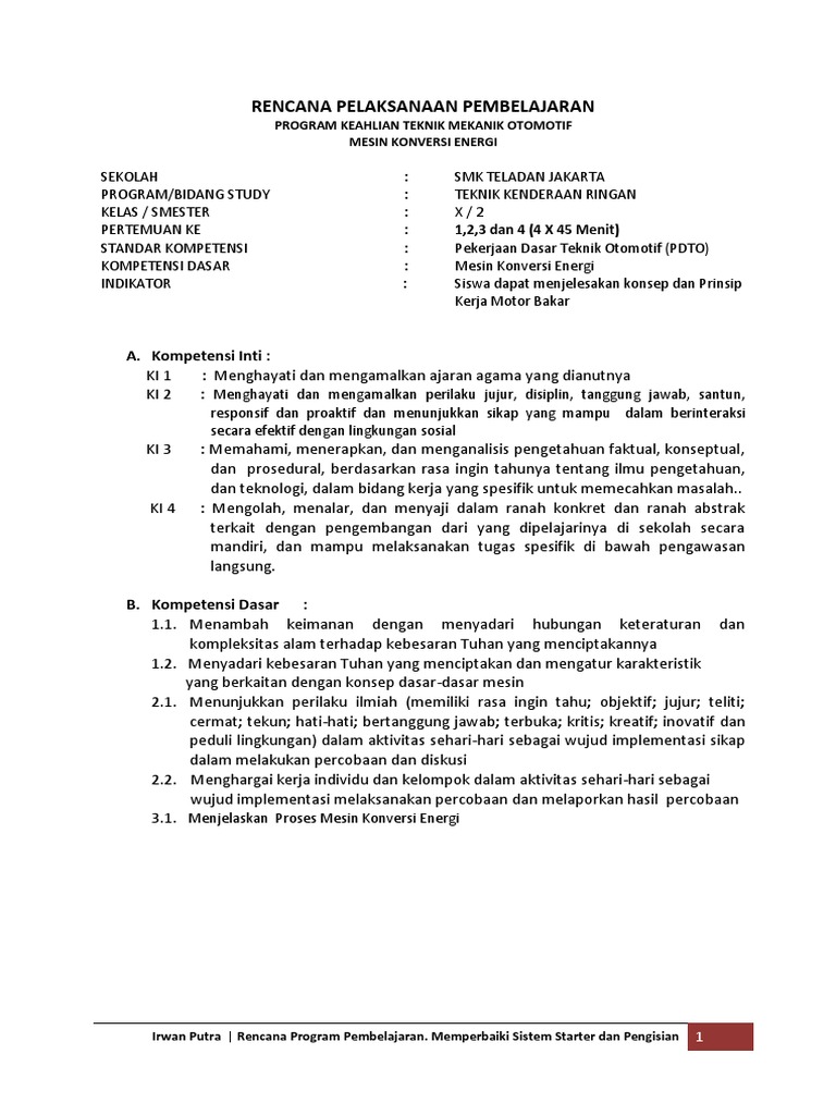 Rpp Mesin Konversi Energi Irwan Putra from imgv2-1-f.scribdassets.com Rpp 1 lembar pkk untuk smk. Rencana pelaksanaan pembelajaran (rpp) program keahlian: Rpp 1 lembar pjok smk kelas 11 semester 2 edisi revisi 2020 (update).hallo sobat ig (ilmuguru.org).pada kesempatan kali ini admin ingin share informasi mengenai penyusunan/pembuatan rpp 1 lembar jenjang smk/mak khusus untuk kelas xi terbaru. Rpp k 13 revisi 2017 tdo 3 1 4 1 pertemuan 1 2. Otomotif x 1 direktorat smk rpp k13 edi cd rpp smk max produktif bidang keahlian pertanian athp atp k 13 ki kd page 12/45. Kelas 8 rpp 1 lembar page 6/45. Penyusunan rencana pelaksanaan pembelajaran (rpp) dilakukan dengan prinsip efisien, efektif, dan berorientasi pada murid adapun penyederhanaannya meliputi sistematika dan komponen yang terdiri dari tiga komponen inti rpp yaitu. Wa 0852.1832.1456 | smk > contoh rpp 1 lembar smk otomotif.